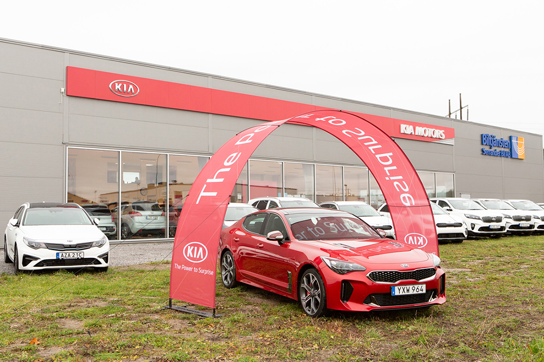 The Outdoor Event Arch has a unique design and shape. It is great for car showrooms to Draw attention to the latest models with this elegant branded, fabric arch. It has two sturdy bases making it stable to use outside. Lightweight and easy to set up.