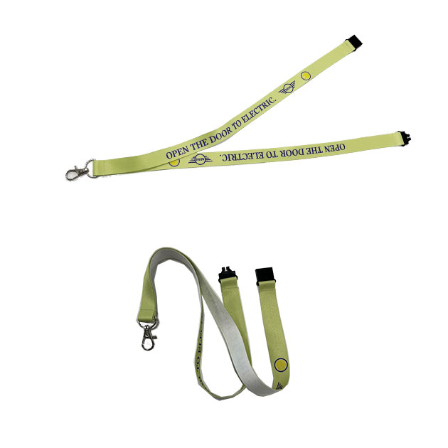 Lanyard for holding a name badge, ID card or keys. Breakaway closure eliminates choking hazards. Single sided print Lanyard with break-away closure